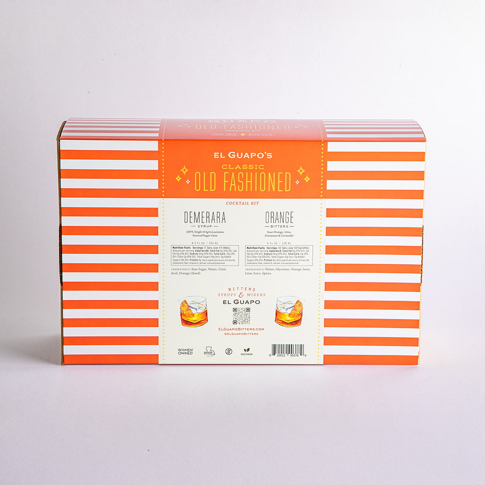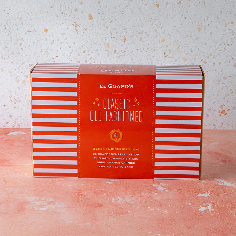 A: The El Guapo Classic Old Fashioned Kit includes ingredients to make up to 34 full-strength, low-proof, or spirit-free cocktails using our recipes in the kit.
